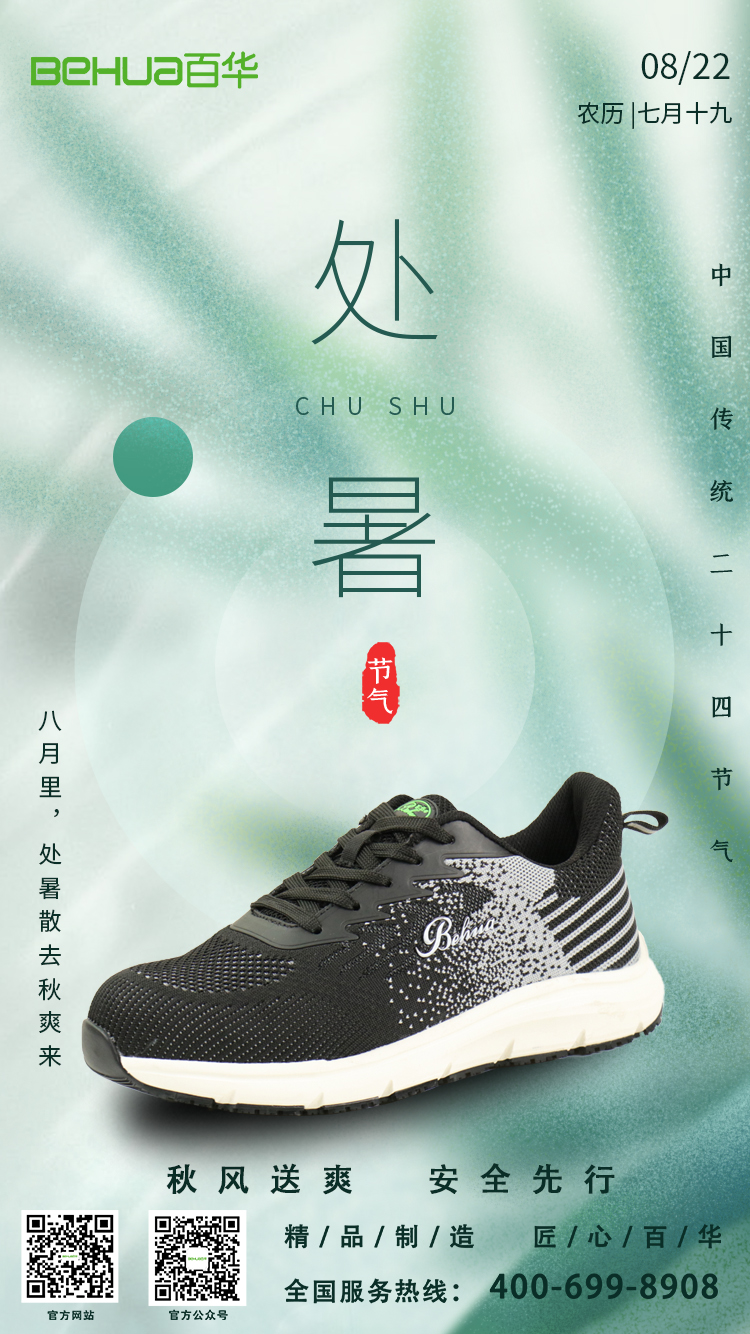隨著處暑節氣的悄然來臨,夏日的熱烈逐漸淡去,取而代之的是秋日的涼爽與寧靜。在這個季節交替的時刻,我們不僅感受到了自然界的微妙變化,也迎來了工作與生活中新的安全挑戰。在金秋的陽光下,每一步都顯得尤為珍貴,而一雙好的勞保鞋,正是我們保護雙腳、安全前行的堅實后盾。百華鞋業以其匠心獨運的產品,為我們筑起了一道安全防線,助力我們在金秋時節步步高升。
